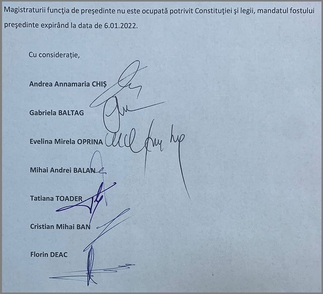Într-un Comunicat adresat procurorului Nicolae Solomon, vicepreședintele CSM, șapte magistrați din CSM, procurori și judecători, îi solicită convocarea de urgență a Plenului CSM în vederea alegerii noului Președinte al CSM, după încheierea mandatului deținut de judecătorul Bogdan Mateescu pînă la începutul acestui an.