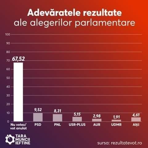 În aceeasi cheie, a treia formatiune clasata, USR-PLUS, cu 15% din voturi, are suportul a doar aproximativ 5% dintre toti alegatorii din tara noastra.