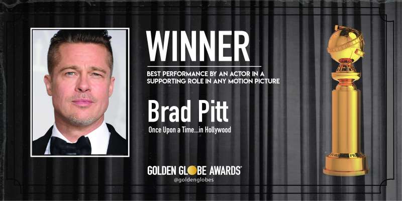 Brad Pitt a fost desemnat cel mai bun actor într-un rol secundar graţie interpretării sale din filmul „Once Upon a Time… in Hollywood” la cea de-a 77-a gală a Globurilor de Aur, atribuite la Los Angeles duminică seară de Asociaţia Presei Străine din Hollywood (HFPA).