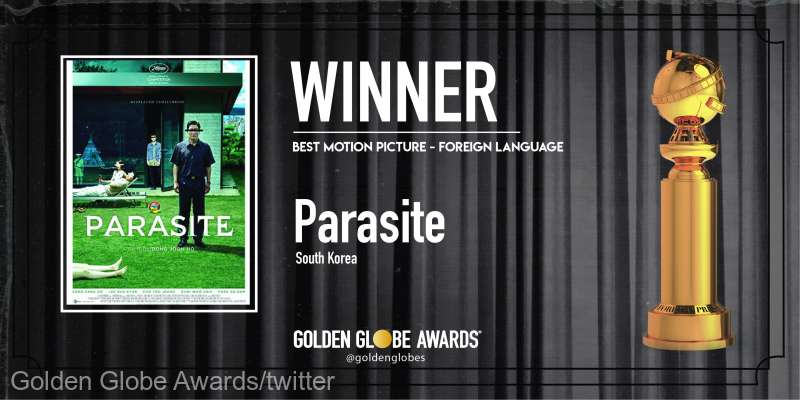 Producţia cinematografică sud-coreeană Parasite, regizată de Bong Joon Ho, a câştigat premiul pentru cel mai bun film într-o limbă străină, duminică seară, în cadrul celei de a 77-a ediţii a Globurilor de Aur.