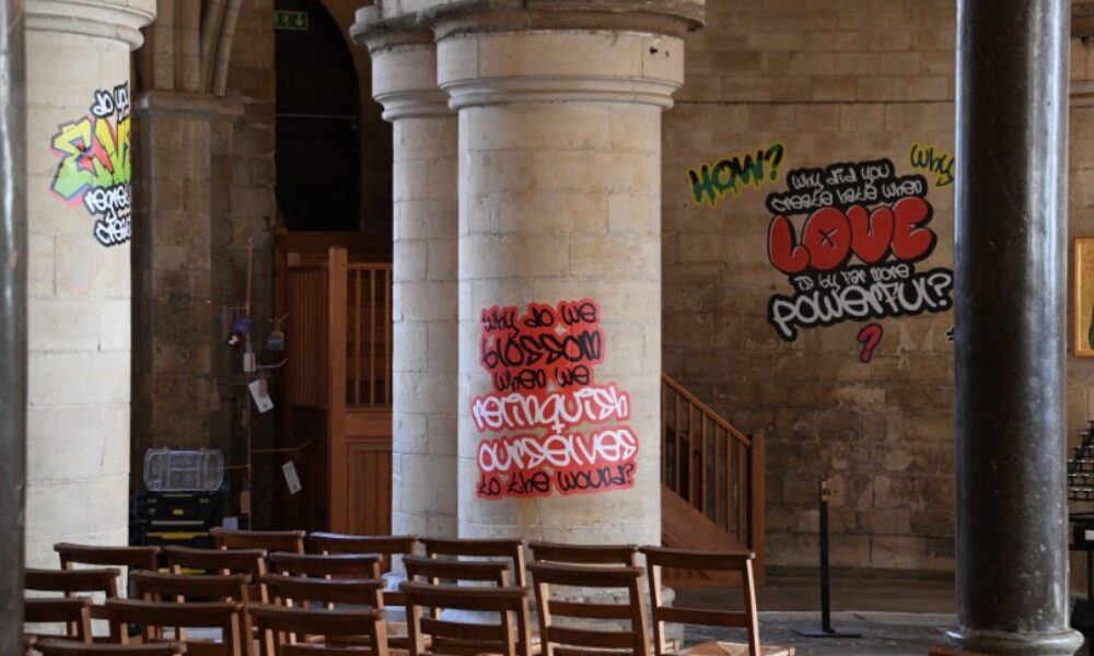 Inițiativa artistică este intitulată „Ascultați-ne”, va fi inaugurată pe 17 octombrie și va rămână deschisă până în ianuarie 2026. Vizitatorii vor admira graffitiuri pe pereții și stâlpii catedralei vechi de 1.400 de ani, precum și pe clădirile din oraș. Catedrala a descris expoziția ca „punctul culminant al colaborării poetului Alex Vellis și administratorului Jacquiline Creswell cu comunitățile marginalizate, pentru a crea o literatură vibrantă, scrisă de mână, care răspunde la întrebarea «Ce l-ai întreba pe Dumnezeu?»”. Printre întrebările alese pentru a fi scrise pe pereți se numără: „Ești acolo?”, „De ce ai creat ură când dragostea este mult mai puternică?” și „Regreți vreodată creația ta?”.