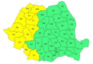 De asemenea, joi, în același interval orar, va fi Cod galben de temperaturi deosebit de ridicate, caniculă și disconfort termic ridicat în județele: Alba, Arad, Bihor, Bistrița-Năsăud, Cluj, Caraș-Severin, Dolj, Hunedoara, Mehedinți, Maramureș, Mureș, Olt, Sibiu, Sălaj, Satu Mare și Timiș.
