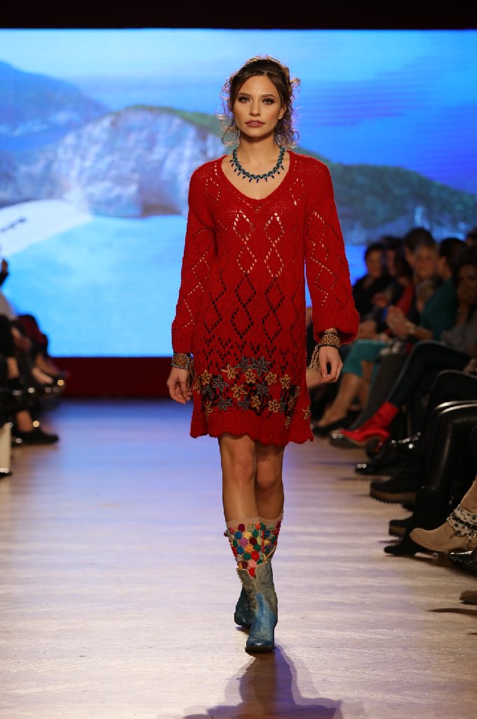 Cu rochii ample, cloche sau drepte, lungi sau până la genunchi, cambrate, cu mâneci ample, cu poncho sau chimono, cu jachete ce urmăresc linia corpului, cu fuste conice drepte şi pantaloni din denim. Materialele vin şi ele din toate colţurile lumii şi sunt de cea mai bună calitate – stofe preţioase, blăniţă cu paiete, catifea, catifea de mătase, material pictate sau brodate manual, mătase, broderii împâslite, combinaţii de voal cu catifea şi paiete cu catifea. Toate sunt menite să fie o prelungire a sufletului, a rădăcinilor uitate, dar care ne pot da putere şi echilibru. Strălucirea personală e pusă în valoare de preţiozitatea ţinutelor, dar şi de comoditatea şi eleganţa lor naturală, firească.