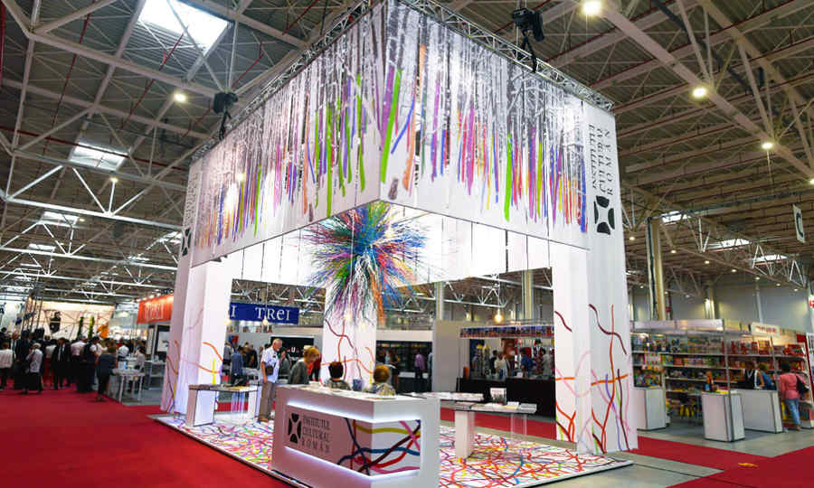 Andreea Macău, arhitectul standului, remarcă: „Povestea standului Institutului Cultural Român are ca temă centrală călătoria. Obiectele de design modern, în alb-negru, pe care sunt expuse cărți de poezie, proză, istorie şi artă, te invită să te oprești, să alegi, să citești, să îţi ridici privirea şi să vezi cuibul, situat exact în inima pădurii“.
