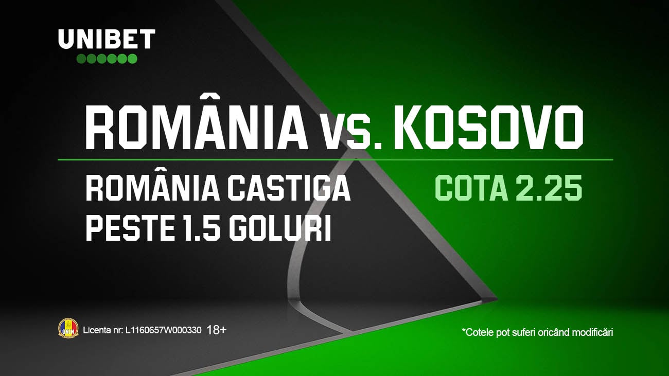 Este interesant de văzut și cum prefațează operatorii de pariuri duelul dintre România și Kosovo. Unibet, un nume de referință la nivel continental, oferă prima șansă echipei noastre pentru a obține victoria. Iar cei care joacă la pariuri pot miza și pe alte selecții din oferta acestui operator.