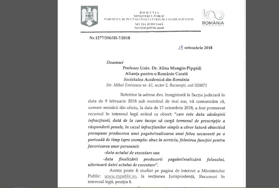 „Din ce se discută în spațiul public, văd că sunt câteva chestiuni care nu s-au lămurit. Este un caz care a început în 2013 și nicidecum în 2004, așa cum s-a afirmat. Ca și în alte cazuri, DNA primește sesizări pentru fapte care s-au petrecut cu 5 ani, cu 6 ani, cu 7 ani. Este una dintre situații și aici. Deci dosarele au fost înregistrate la DNA în 2013, au consituit o prioritate și a început investigația complexă în care procurorii au trebuit să dovedească fapte petrecute în urmă cu 10 ani. În 4 ani de zile s-au făcut 4 rechizitorii, au fost trimiși în judecată doi foști miniștri dintre care unul a și fost condamnat definitiv, și alte persoane. Pentru o parte din foștii miniștri care au fost investigați, a intervenit prescripția răspunderii penale, termen care nu poate fi imputat unui procuror, din moment ce noi am fost sesizați abia în 2013. Însă, modul cum s-a calculat termenul de prescripție a fost diferit datorită practicii judiciare determinate de intrarea în vigoare a noilor coduri.