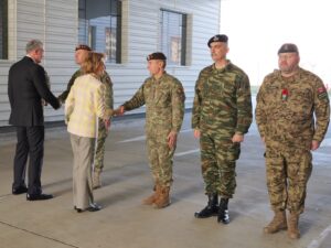 Generalul-maior Cristian-Daniel Dan, comandantul marii unități, a întâmpinat oaspeții regali, alături de ofițeri superiori din conducerea Corpului Multinațional, reprezentând România, Canada și Grecia, potrivit unui comunicat al Familiei Regale a României.