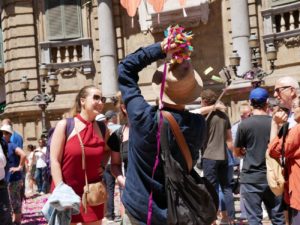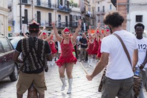 Să începem cu Procesiunea Palermo, al Marinellei Senatore, paradă de dansatori, cântăreţi, instrumentişti, majorete, care a traversat în 16 iunie străzile centrului istoric până la mare şi care a avut un contrapunct neaşteptat în procesiunea Sfântului Onofrio. Am putea spune că a fost răspunsul incredibil de eficace a oraşului la unele limbaje artistice, care păreau astfel foarte „acasă”.