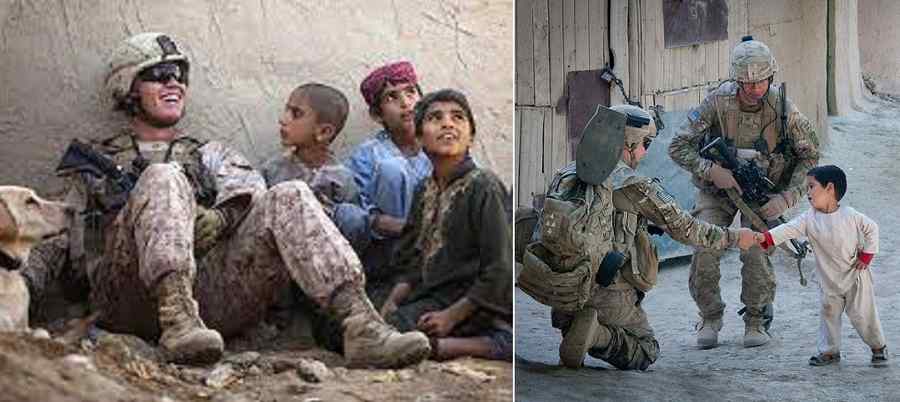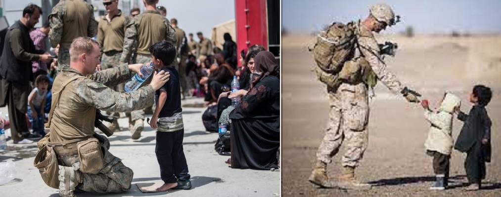 Motivul acestei manipulări este cît se poate de clar: minimalizarea haosului de după retragerea NATO prin distragerea atenției de la această temă fierbinte și deturnarea către subiecte cu un impact emoțional puternic: violența talibanilor, copii aruncați peste gardul de sîrmă de la aeroport, căderea unor afgani din avioanele de care s-au agățat. În același timp, apar sute de imagini cu soldați americani care bat cupa cu copiii afgani și chiar cu soldați cu copii în brațe, ca niște mame iubitoare! Iată cîteva dintre acestea: