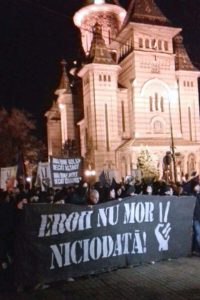 Sute de persoane au participat, sâmbătă seara, la Timișoara la ”Marșul eroilor”, organizat de către Asociația suporterilor ”Druckeria, precum și Peluza Sud”, la împlinirea a 28 de ani de la declanșarea revoltei anticonumiste din capitala Banatului.