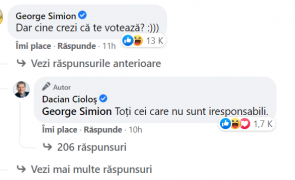 „Dar cine crezi că te votează?, a comentat Simion care la rândul său a primit numeroase răspunsuri.