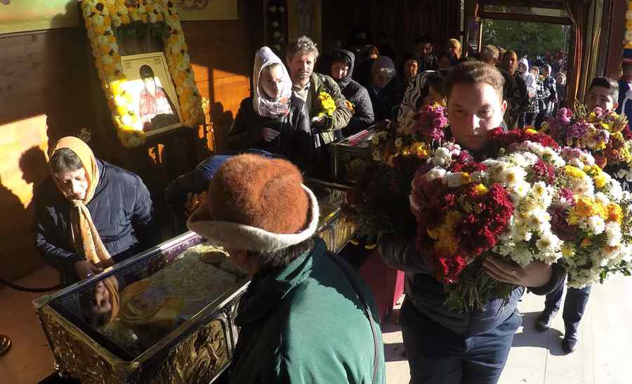 Veniți din diverse colțuri ale țării, oamenii așteaptă cel puțin trei ore pentru a ajunge la racla sfântă.