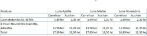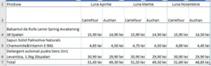 O altă creștere o putem observa și la alimentele de bază. La Auchan, prețul total al coșului cu alimente a crescut față de luna martie cu 2,44%, iar la Carrefour cu 2,24%.