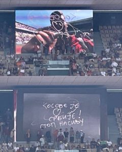 „Kosovo este inima Serbiei. Opriţi violenţa”, a scris pe obiectivul camerei, în limba sârbă, Djokovic.