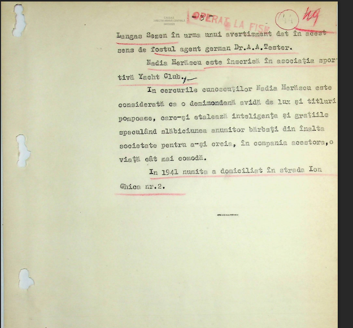 De ce m-am apucat să scriu treburile astea?! Fiindcă acum câtva timp am dat în arhivele Securității peste o fișă moștenită de la precursorul ei, SSI, care o privea pe Nadia Herăscu (Herescu), viitoare Gray. O fac publică în premieră în România.