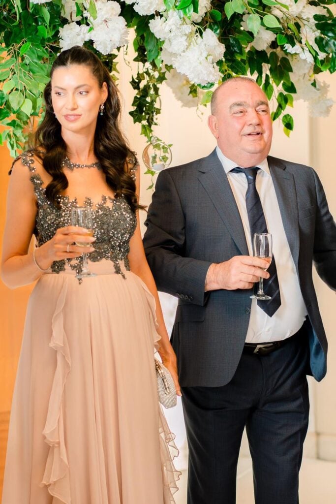Nașii tânîrului cuplu sunt Gigi Nețoiu, fost acționar la echipele de fotbal Rocar București, FC Dinamo București și FC Universitatea Craiova, împreună cu partenera lui de viață, Cătălina.