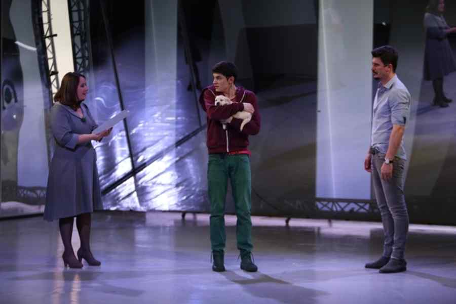 O întâmplare ciudată cu un câine la miezul nopţii este un show performativ, în care lumea-decor construită de Adrian Damian, din oglinzi, distanţe şi percepţii, se compune şi se descompune pentru a ne aduce faţă în faţă cu noi şi certitudinile noastre fragile.