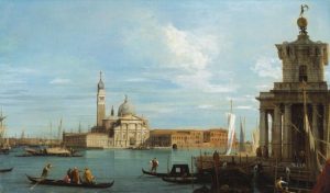 Capriccio cu biserică gotică și lagună de Canaletto (Veneția, 1697 – 1768), Vedere spre Canal Grande cu Riva del Vin și Riva del Carbon de Michele Marieschi (Veneția, 1710 – 1744), Piața San Marco către San Geminiano de Francesco Guardi (Veneția, 1712 – 1793) și Vedută cu Santa Maria della Salute și Punta della Dogana de Hendrik Frans van Lint (Anvers, 1684 – Roma, 1763) ne poartă printre clădiri, locuri, colțuri devenite definitorii pentru geografia, arhitectura și atmosferaVeneției, oraș care a contribuit din plin la dezvoltarea vedutei grație atracției exercitate asupra a nenumărate generații de amatori de artă.