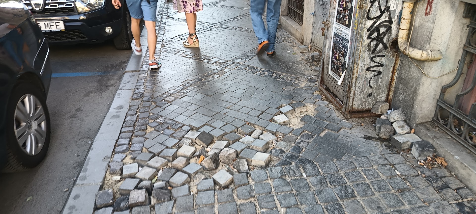 Cât despre trotuare sau gazonul de lângă, ce să mai vorbim. Pe alocuri, e sublim, dar lipsește cu desăvârșire. Ne întrebăm, în aceste condiții, ce vor vedea turiștii care circulă cu recent reînființata linie turistică Bucharest City Tour. Vedeți și dvs: