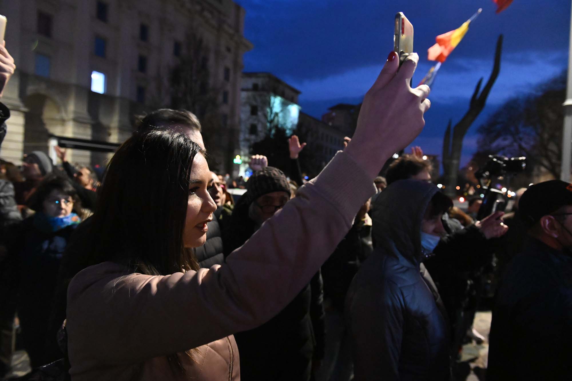 Oamenii s-au adunat pe platoul din faţa Prefecturii Constanţa, au steaguri tricolore, iar cei mai mulţi dintre ei nu poartă mască. “Libertate te iubim”, “Ori învingem, ori murim”, “Libertate, libertate”, “Jos Guvernul”, sunt câteva dintre scandările sau mesajele de pe pancarte.