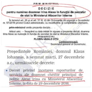 Fosta polițistă Irina Alexe, pensionată la 42 de ani a fost numită în funcţia de secretar de stat la Ministerul Afacerilor Interne printr-o decizie a prim-ministrului Florin Cîţu publicată, joi, în Monitorul Oficial. Propunerea aparține USR-PLUS.