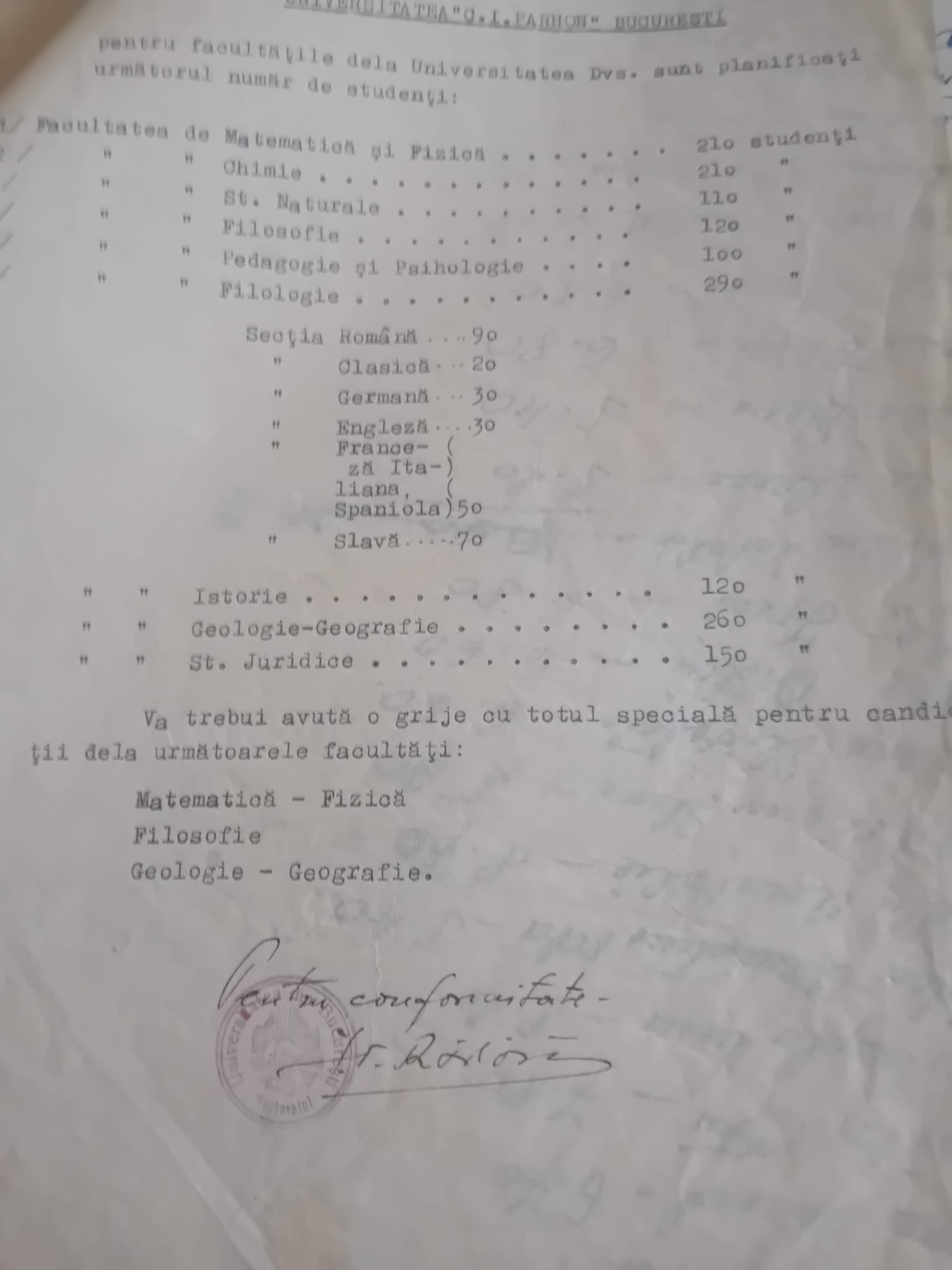 În „capsula timpului” găsită de amicul meu, am mai dat peste o statistiscă a locurilor scoase la concurs la Universitatea Parhon de unde se vedea procesul accentuat de sovietizare, fiindcă la limba engleză erau doar 30 de locuri, iar la rusă 70.