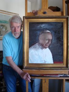 În luna februarie, aflând că Papa Francisc vine în România și știind că a făcut o excepție acceptând să devină membru de onoare al Academiei Române, le-am propus colegilor mei să-i pictez portretul pe care să-l oferim apoi din partea noastră. Entuziasm, bucurie mare! Am lucrat intens din luna martie și am terminat pictura cu câteva zile înaintea vizitei înaltului oaspete. Am încadrat tabloul într-o ramă veche franțuzească, am informat membrii Biroului Prezidiului că sunt gata și i-am întrebat cum procedăm. Știam că Papa nu va veni în aula din Calea Victoriei, ci doar o delegație de academicieni va participa la o întrunire cu „Su Santidad”. Îmi doream să fiu de față atunci când se înmâna portretul Papei pentru care am un respect nemăsurat, Sanctitatea Sa fiind singurul om de pe pământ în fața căruia aș îngenunchia.