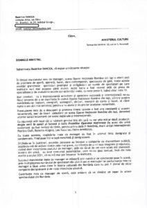 În demisia adresată ministrului culturii putem observa că realizările lui Beatrice Rancea ”au fost în ultimul timp denigrate și condamnate, fiind puse într-o lupă meschimă și denigratoare”, așa cum reiese din documentul de mai jos.