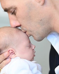 Într-una dintre fotografii, acesta își sărută fiica pe frunte, iar în celelalte apare alături de fetiță și de soția lui, Alina-Maria.