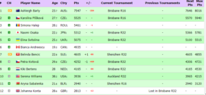 1. Ashleigh Barty (Australia) – 7851 puncte
