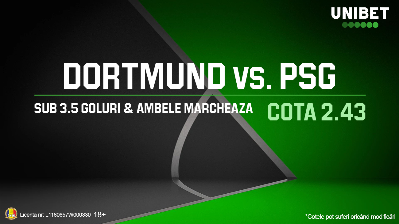 În ceea ce privește cotele online la pariuri 1X2, Dortmund are 2.63 să se impună, PSG are 2.50, iar egalul are 3.75. La calificare, PSG are 1.35, iar Dortmund are 3.00. Va fi interesant însă să vedem deznodământul din meciul de miercuri, mai ales că ambele echipe își propun să marcheze.