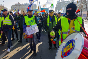 Protestatarii s-au strâns în jurul orei 12,00 în Piața Constituției, de unde au plecat în marș trecând prin fața ministerelor Finanțelor, Justiției, Muncii, Afacerilor Interne. Majoritatea au purtat veste fosforescente, au fluturat steaguri, au bătut în tobe și au suflat în vuvuzele.