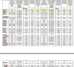 De ce nu poate crește vârsta de pensionare în RomâniaPrima știre șocantă este că anul trecut speranța de viață a scăzut cu 1,4 ani, conform datelor Eurostat.Al doilea argument vine din faptul că trebuie analizată speranța de viață sănătoasă, un indicator ce vorbește despre calitatea vieții în ultimii ani (cât de sănătos ești).În România un bărbat ajuns la pensie mai trăiește sănătos 6 ani și jumătate, în Germania (vârsta de penionare este mai mare cu 7 luni) dar durata de viață sănătoasă este de 11 ani și jumătate. În Spania 12 ani și jumătate, iar în Polonia 8.La femei vârsta de pensionare este mai mare sau egală cu cea din țările Europei Centrală și de Est, dar penionarele trăiesc mai puțin sănătos comparativ cu celelalte țări. (Vă rog să vedeți tabelul de mai jos).Pentru cei care au început să creadă că sunt nemuritori și veșnic sănatoși sau pur și simplu nu le pasă de mamele, tații, bunicele și bunicii lor le dau o veste proastă: chiar și ei vor îmbătrâni.Iar cu statistica (chiar dacă este o medie) nu te joci. Speranța de viață sănătoasă în România este incomparabil mai mică cu cea din Uniunea Europeană.Haideți să ne concentrăm mai întâi pe rezolvarea cauzelor care duc la aceste realități triste, lipsa unei alimentații și a unei vieți sănatoase din cauza sărăciei, condițiile grele de muncă și apoi să vorbim despre creșterea vârstei de pensionare.