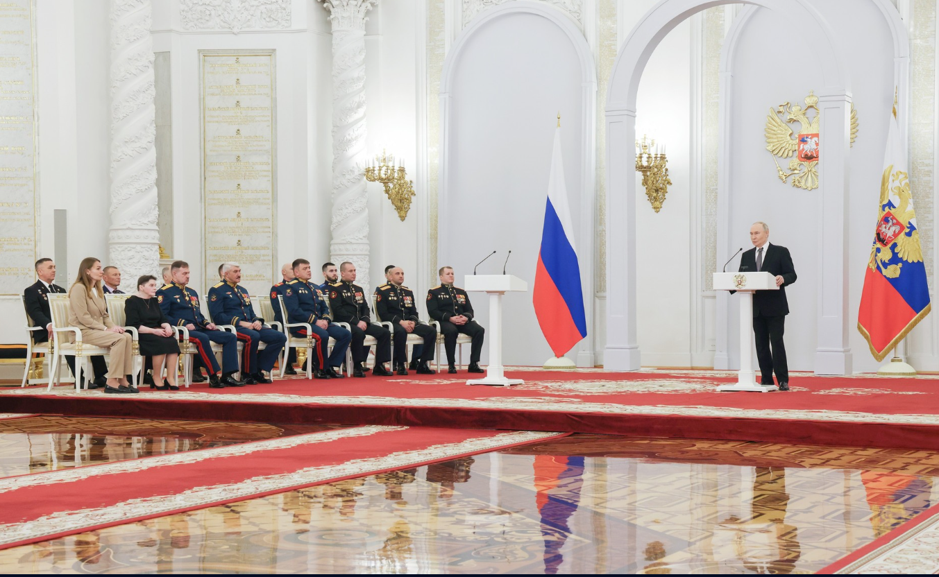 În cuvântul său, Vladimir Putin a precizat că îi onorează pe marii fii și fiice ai Rusiei care au săvârșit fapte remarcabile în numele țării lor natale, pe toți cei care, prin isprăvile lor militare și de muncă, prin dăruire și curaj, au dat un exemplu de adevărată slujire a Patriei. In discursul său, el a vorbit despre soldații care dau dovadă de „o vitejie excepțională în timpul îndeplinirii misiunilor în zona de operațiuni militare speciale“.