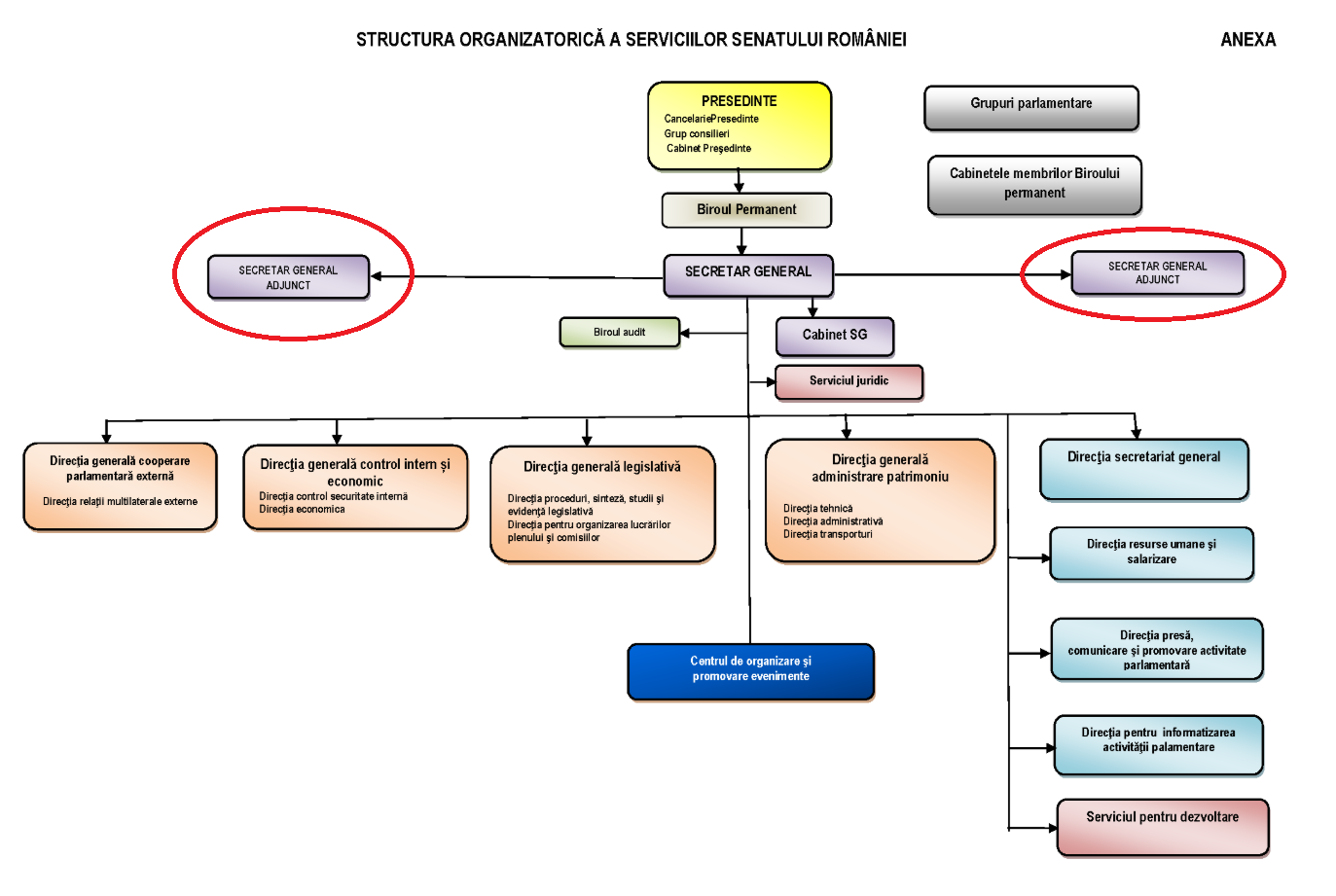 Aceeași organigramă este postată și pe site-ul Senatului.