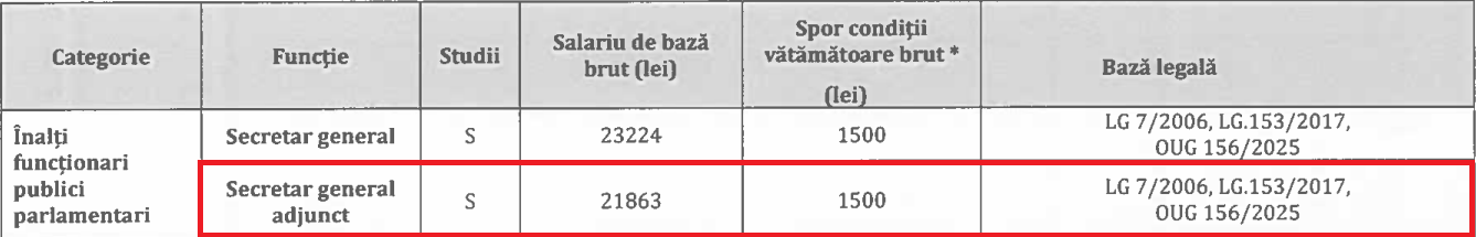 Între timp, salariile și beneficiile pentru cele trei secretare generale adjuncte curg. Un document din 31 martie 2025 arată că salariul pentru un astfel de post este de 21.863 de lei brut. La acest venit se adaugă și alte beneficii, cum ar fi mașină cu șofer pentru fiecare dintre secretarii generali adjuncți, dar și consilieri plătiți din banii Senatului.