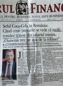 Coca Cola zice că azi, când cresc costurile, se vede că românii trăiesc din salariul minim.