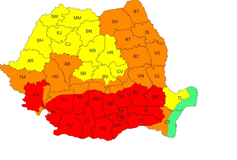 Administrația Națională de Meteorologie (ANM) a emis mai multe avertizări de cod roșu, portocaliu și galben, valabile în intervalele 7 iulie – 9 iulie, pentru cea mai mare parte a țării. Situația este gravă: în sud, disconfortul termic atinge cote alarmante, în timp ce în vest și nord-vest, vijeliile puternice pun în pericol populația și infrastructura.