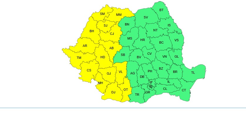 Zonele afectate sunt Maramureș, Crișana, Banat, Oltenia și vestul Transilvaniei, unde maximele termice vor atinge frecvent 33–37 de grade Celsius, iar indicele temperatură-umezeală (ITU) va atinge sau depăși ușor pragul critic de 80 de unități, potrivit ANM.