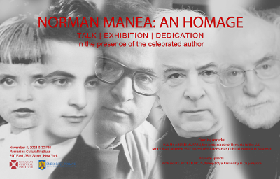 “Institutul Cultural Român din New York și Ambasada României în Statele Unite organizează, în data de 5 noiembrie 2021, un eveniment special în onoarea prozatorului și eseistului Norman Manea, unul dintre cei mai cunoscuți autori români la nivel mondial și supraviețuitor al Holocaustului, pentru a celebra cariera de peste cinci decenii și reușitele literare deosebite ale acestui important scriitor și intelectual public, precum și rolul său excepțional în întărirea relațiilor culturale româno-americane (…) În deschidere vor lua cuvântul dl. Andrei Muraru, ambasadorul României la Washington, și dl. Dorian Branea, directorul ICR New York. (…) Cu această ocazie, ca un moment distinct al serii, sala principală a ICR New York va primi numele Norman Manea”, informează o „notă de presă” trimisă prin e-mail de ICRNY.