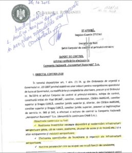 Raportul întocmit de Corpul de Control al fostului premier Mihai Tudose a întors pe toate fețele evoluția negativă a Companiei Naționale Aeroporturi București, fiind indicate și câteva persoane responsabile de acest lucru. Interesant este, conform unor surse, că fostul ministru al Transporturilor Felix Stroe nu a dorit să dea publicității acest raport. Conform documentului de control, în perioada 2013-2015 compania CNAB SA nu a realizat nicio investiție în infrastructura aeroportuară, deși în bugetul de venituri și cheltuieli, pentru fiecare an, au fost alocate sume între 201 milioane lei și 267 milioane lei. În perioada 2016-2017 compania a realizat doar 0,03%-0,16% pentru investiții în infrastructura aeroportuară, pentru care au fost alocate sume între 99 milioane lei pentru 2016 și doar 9 milioane lei pentru 2017. În schimb, în acest timp, CNAB SA avea în derulare o serie de contracte despre care raportorii arată că au fost păguboase pentru companie.