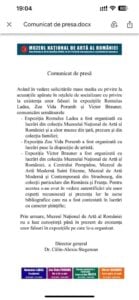 Ca răspuns la această postare, Muzeul Naţional de Artă al României a transmis un comunicat de presă în care precizează că expoziţiile Romulus Ladea, Zoe Vida Porumb şi Victor Brauner au fost realizate cu lucrări din colecţia Muzeului Naţional de Artă al României şi a altor muzee din ţară, precum şi din colecţia familiei (Romulus Ladea) şi cu lucrări puse la dispoziţie de artistă (Zoe Vida Porumb).