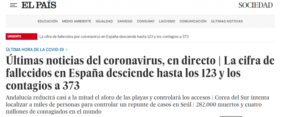 Vești mai bune pentru spanioli luni, 11 mai. Numărul deceselor din cauza coronavirusului a scăzut în Spania în ultimele 24 de ore la 123, în timp ce numărul cazurilor noi de îmbolnăvire a fost de 373, cifra cea mai scăzută începând din 9 martie, a anunțat luni Ministerul Sănătăţii de la Madrid, citat de agențiile de presă.