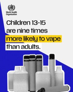 În ţări în care există aceste date, copiii sunt în medie de nouă ori mai susceptibili de vapare decât adulţii, potrivit OMS.