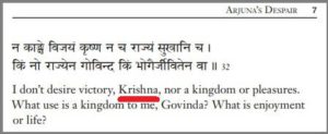 Transliterarea numelui celebrului zeu indian este însă unanim recunoscută ca fiind sub forma „KRISHNA”, nu „KRSNA”, cum scrie Gabriel Chifu! Putea afla asta de pe Wikipedia, unde citim: „Krishna, कृष्ण în devanagari, în AITS kṛṣṇa, pronunțat în AFI /’kɹ̩ʂ.ɳə/ conform sanscritei clasice”. Așadar, Chifu, fost inginer la fabrica de nutrețuri (IPPPFNC), avea de ales: scria Krishna sau Kṛṣṇa, în nici un caz Krsna! Iată, de pildă, chiar textul din Bhagavad Gītā, în versiunea lui Lars Martin Fosse, alături de pasajul în devanagari: