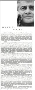 GABRIEL CHIFU este vicepreședintele Uniunii Scriitorilor și director executiv al revistei „România literară”, adică adjunctul veșnic al lui Nicolae Manolescu în cele două instituții. Asta în ceea ce privește funcțiile deținute de ani de zile în instituțiile care ar trebui să fie reprezentative pentru lumea scriitorilor. Numai că…