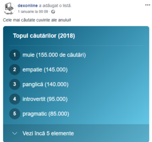 Cel mai căutat cuvânt pe dexonline.ro anul trecut a fost cuvântul ”muie”, arată un „top” publicat pe pagina de Facebook a dexonline.ro.