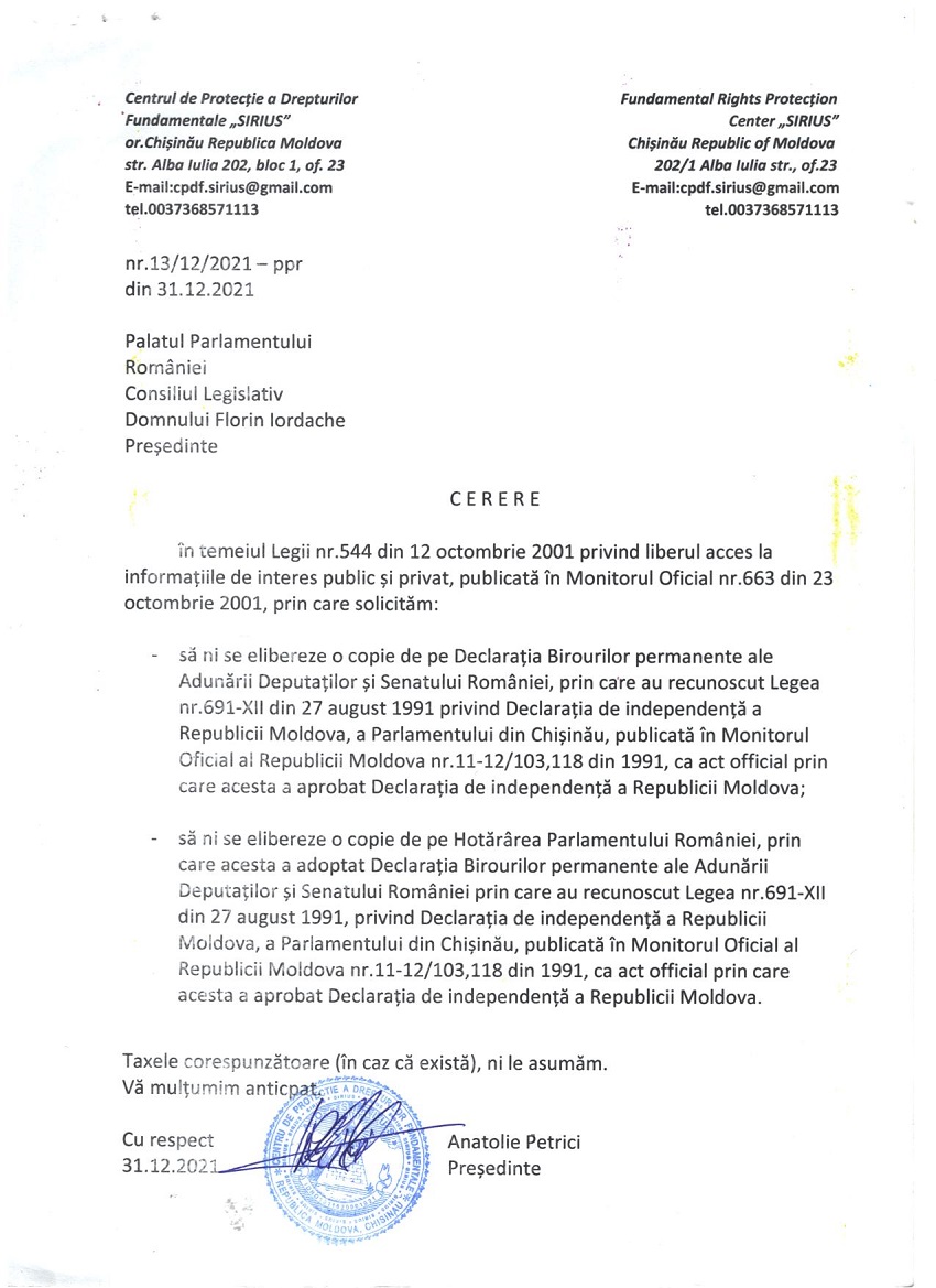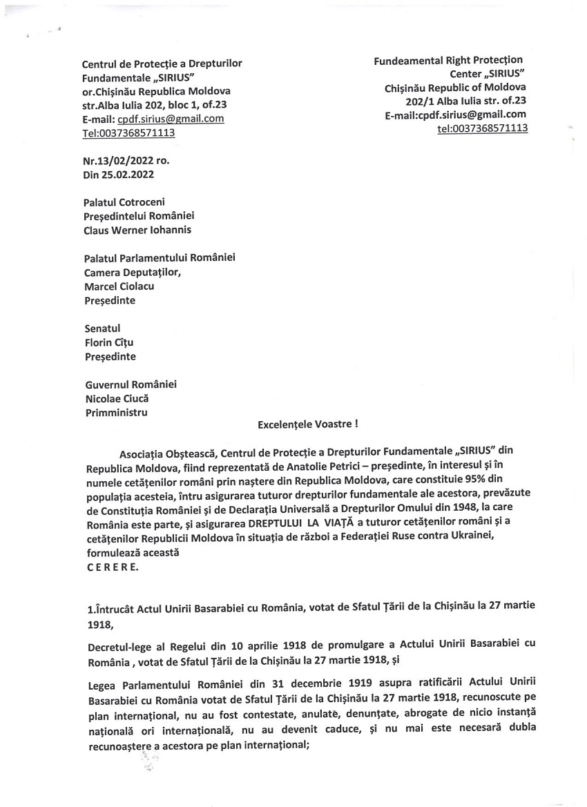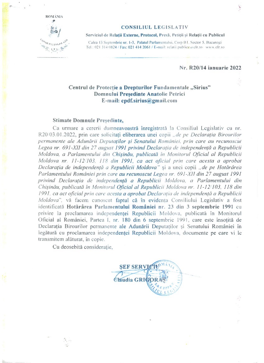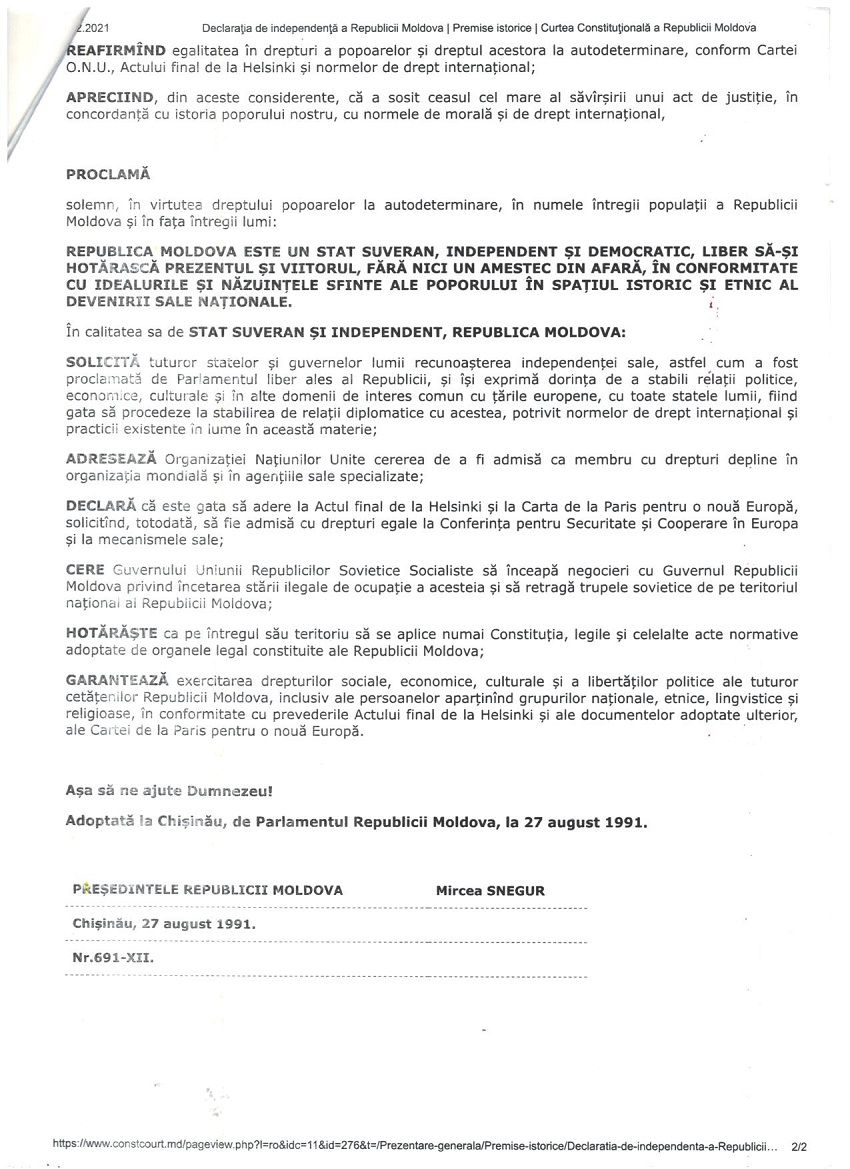 – consideră ca fiind pe deplin legitimă dorinţa acelor cetăţeni ai Republicii Moldova care susţin unificarea celor două state ca o continuare firească în procesul de dezvoltare şi afirmare a naţiunii române şi subliniem că acest act depinde de voinţa acestora,