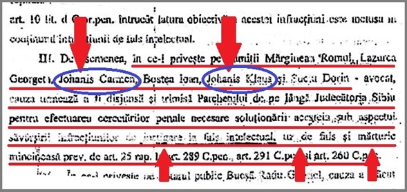 Pentru aceste falsuri, secretarul primăriei din Porumbacu a fost chiar condamnat, dar încă nu s-a răspuns la întrebarea-cheie: pentru cine şi de ce a făcut acest fals, căci beneficiarul falsului, adică familia Iohannis, s-a folosit în instanţă de acel document falsificat!