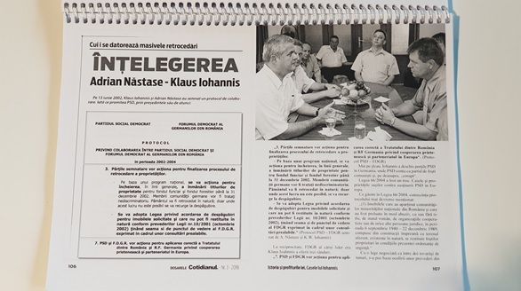 Tot în legătură cu succesiunea FDGR faţă de GEG, „Cotidianul” a publicat încă de anul trecut Protocolul semnat pe 13 iunie 2002 între Klaus Iohannis, ca preşedinte al FDGR, şi Adrian Năstase, ca Prim-ministru: